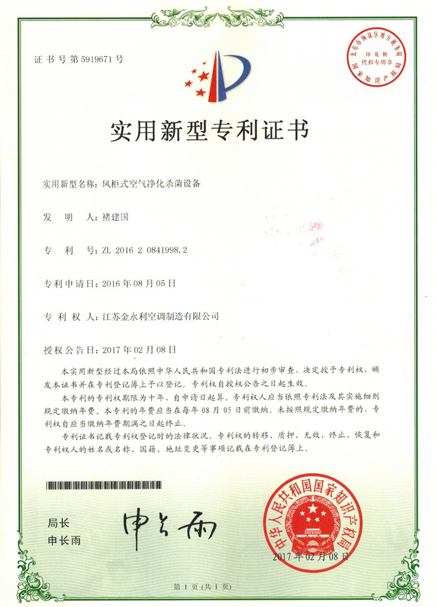 江蘇金永利空調制造有限公司創建于1988年,技術力量雄厚,是生產凈化設備的專業廠家。公司連續八年被評為“生合同,守信用”企業、被省科學技術廳評為“江蘇省高新技術企業”、連續六年被江蘇國際咨詢公司評為“AAA級資信企業”、被泰州市委、市政府命名為“雙文明單位”、被靖江市委、市政府命名為“靖江市雙文明單位”、“靖江市科技進步先進企業”、“靖江市五星達標企業”、“市屬標兵企業”之一。 ......